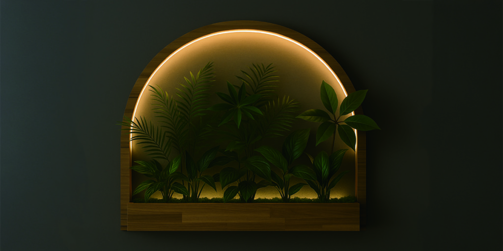 光と緑が調和する静寂のウォールアート
